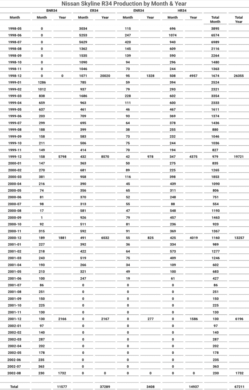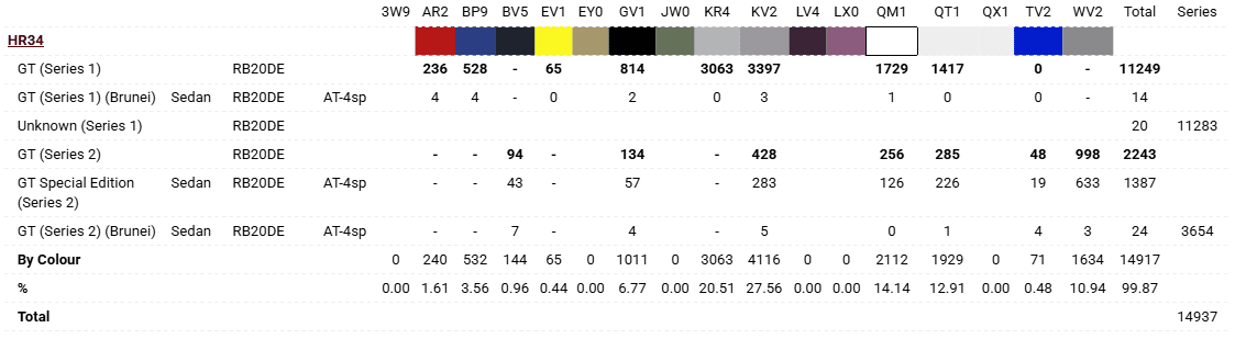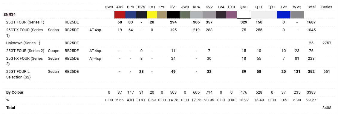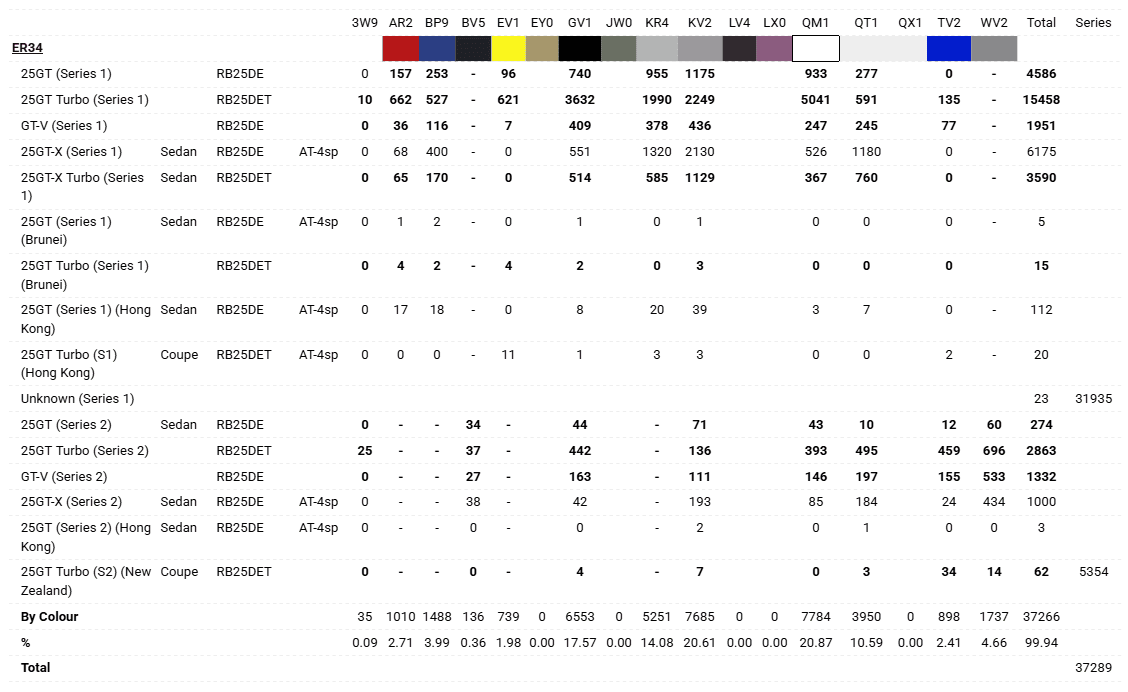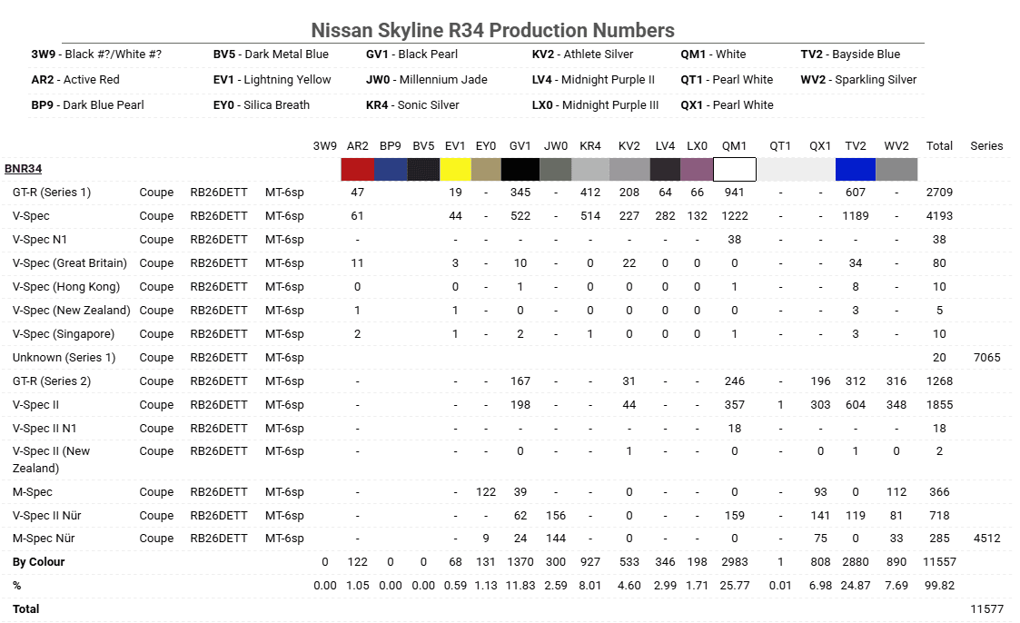 General Nissan Skyline R34 Production Numbers