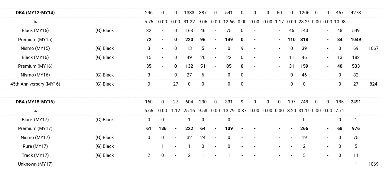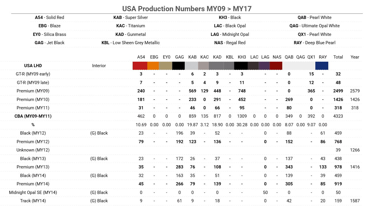 General Nissan Skyline R35 Production Numbers
